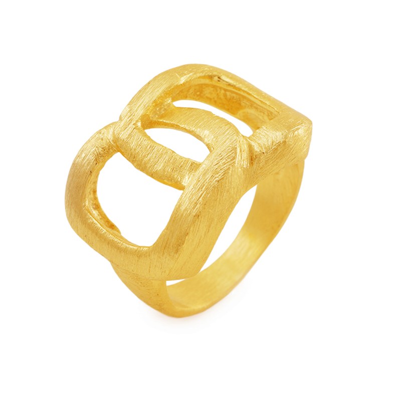 Anillo cuadrados rayados cruzados baño de oro amarillo 18k
