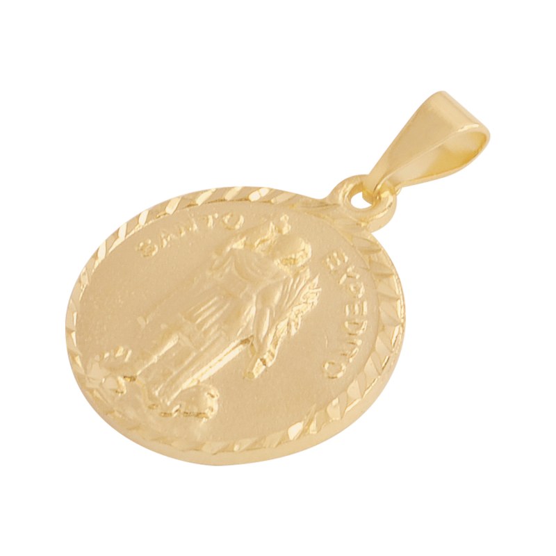Pendiente placa de sagrado de Jesús baño de oro amarillo 18k