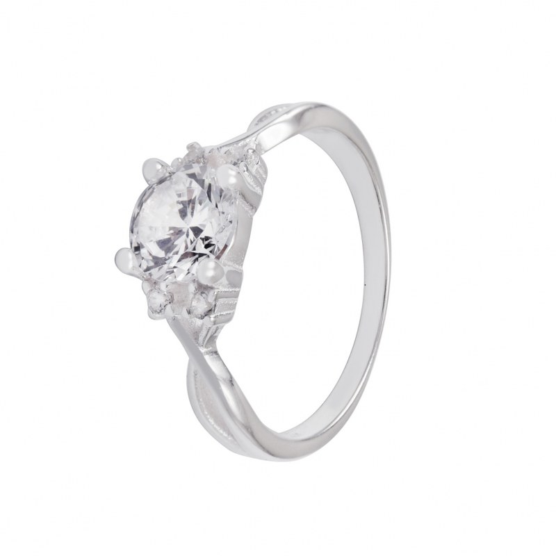 Anillo solitario cintillo circón redondo color cristal Plata 925