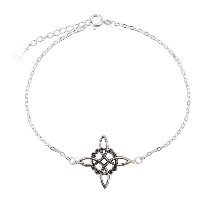 Pulsera nudo de bruja envejecido largo: 17cms Plata 925