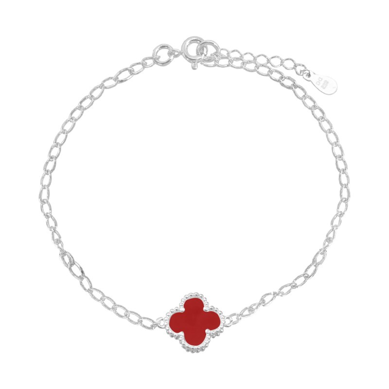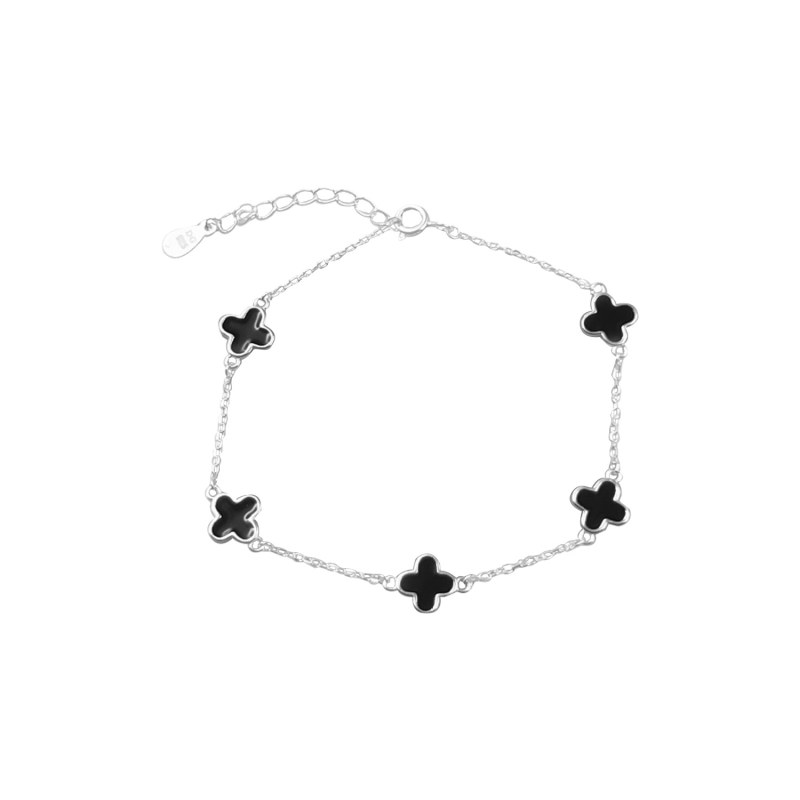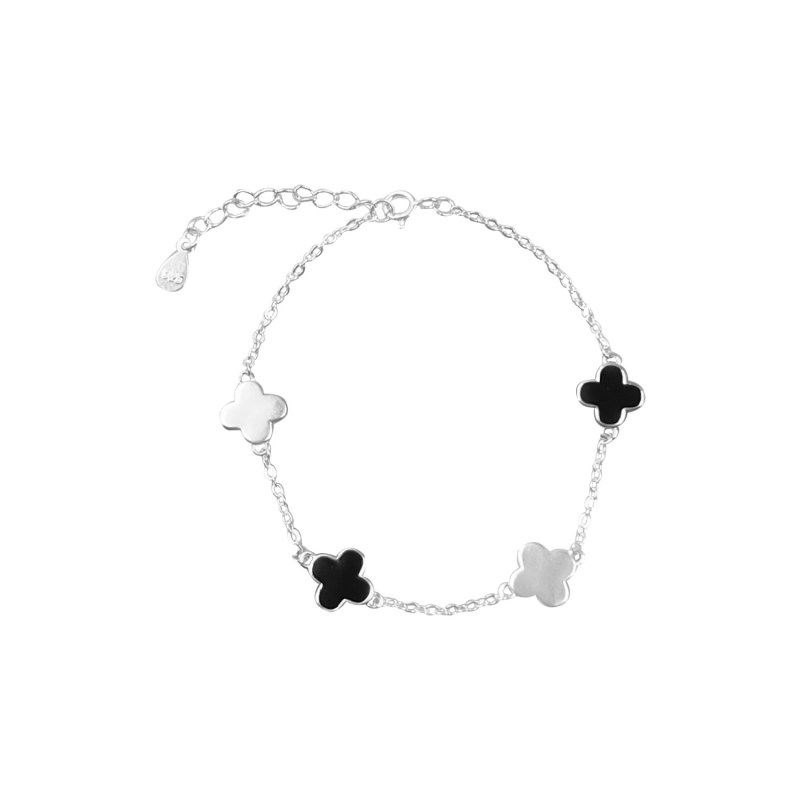 Pulsera cinco trébol color negro 17cms Plata 925