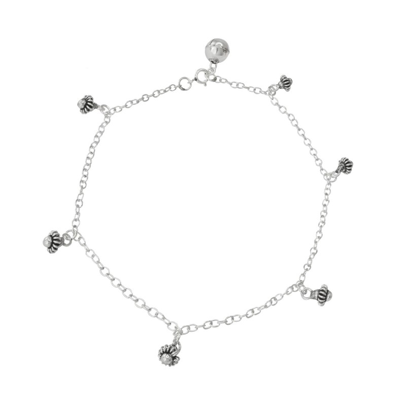 Tobillera bolitas y cuatro circones 25cms Plata 925