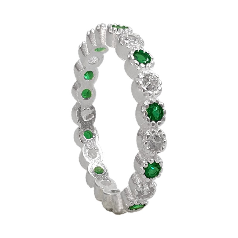 Anillo cintillo rodeado con circones color cristal y verde Plata 925