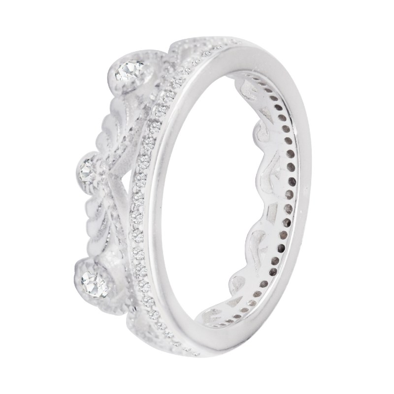 Anillo corona centro corazón color cristal y negro circones plata 925