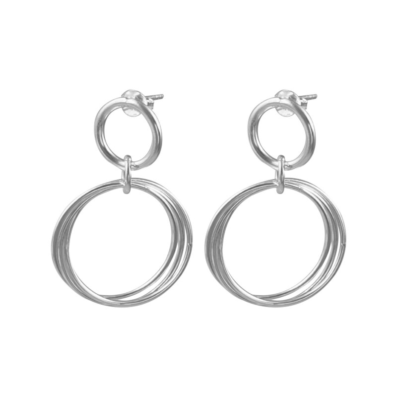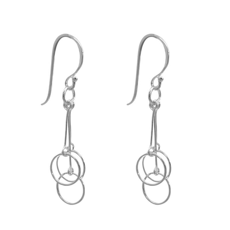 Aro largo argolla apegada y tres colgantes enlazadas Plata 925