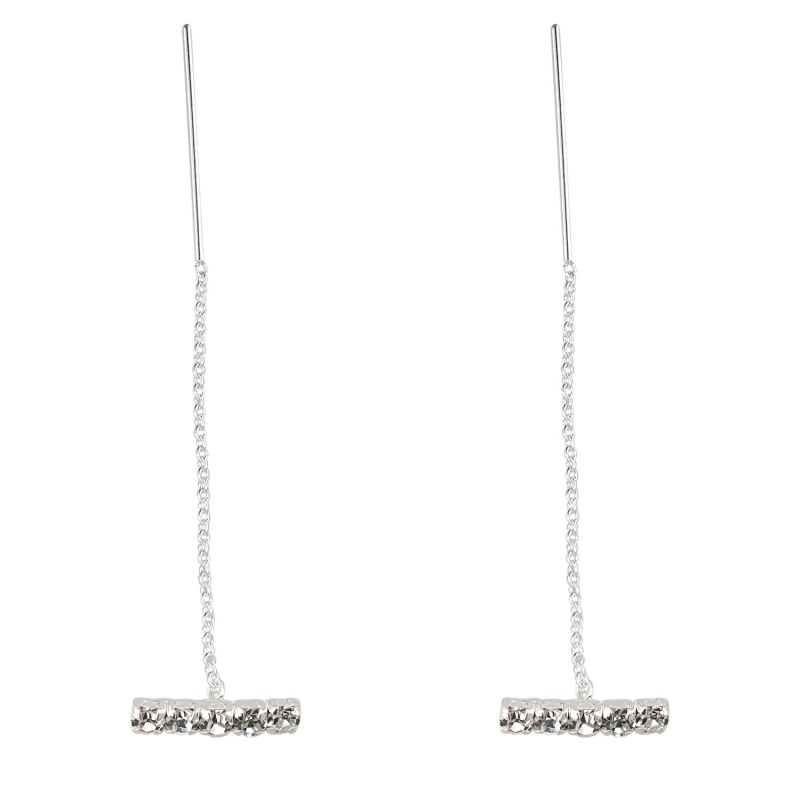 Aro largo cadena barra con micro circones plata 925
