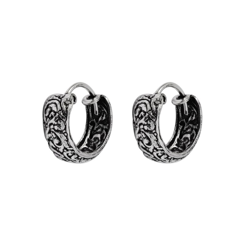Aro argolla bote envejecido con diseño diam 12 mm Plata 925