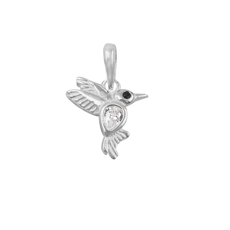Colgante colibrí volando pequeño con circón varios colores Plata 925