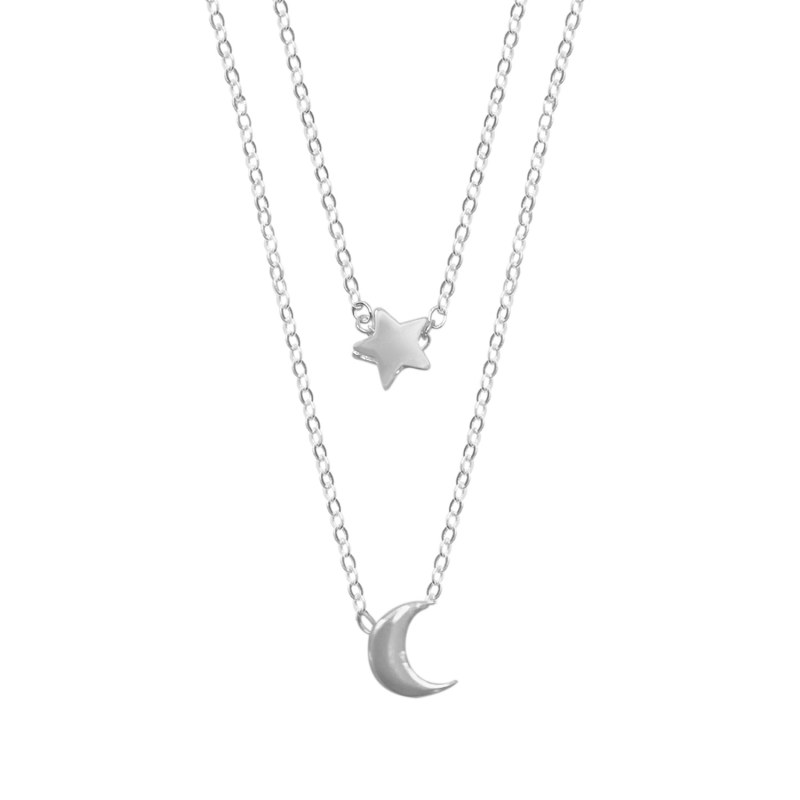 Collar doble cadena punto de luz y luna Plata 925