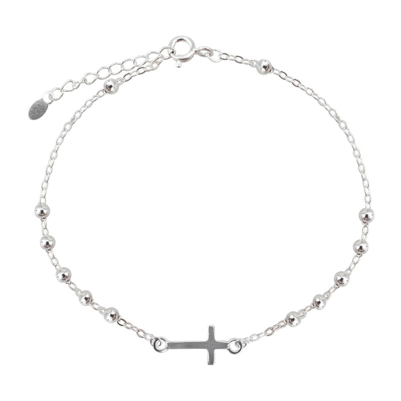 Pulsera bolitas y cruz largo: 17cms mas 3cms extensión Plata 925