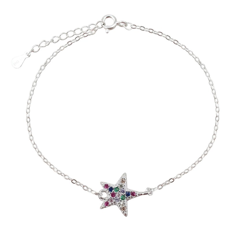 Pulsera estrella con micro circones multicolor largo: 17cms Plata 925