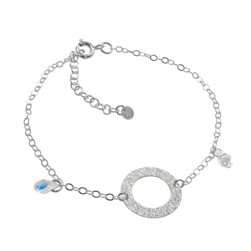 Pulsera satinada con circulo y flor largo: 18cms mas 3cms extensión Plata 925