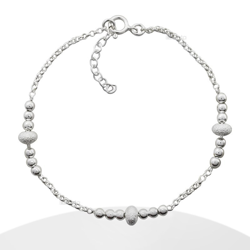 Pulsera satinada con diseños geométricos Plata 925 de 18 cms + alargue
