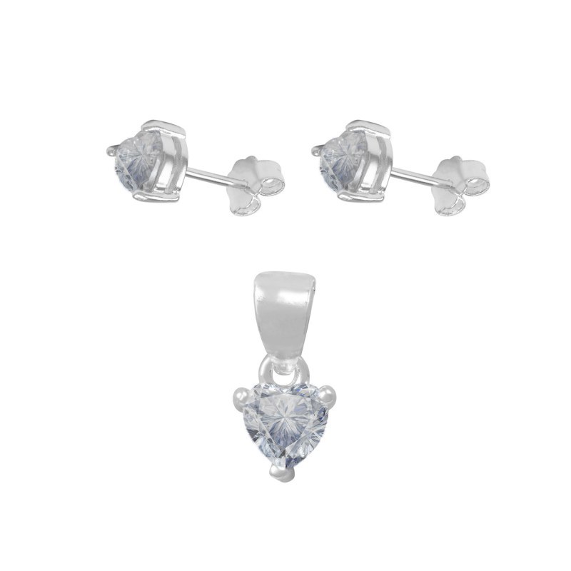 Set circón corazón diámetro: 6mm cinco colores diferentes Plata 925